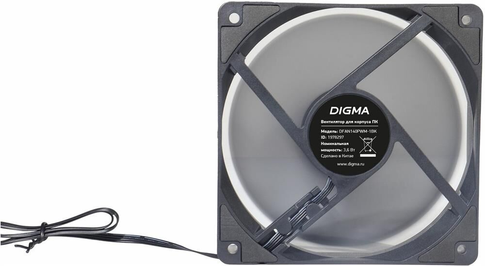 DIGMA Вентилятор DFAN140PWM-1BK 140мм, 4-pin, 1500об/мин, 11 - 28 дБ, черный, Ret