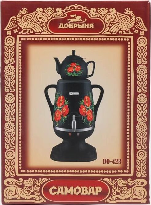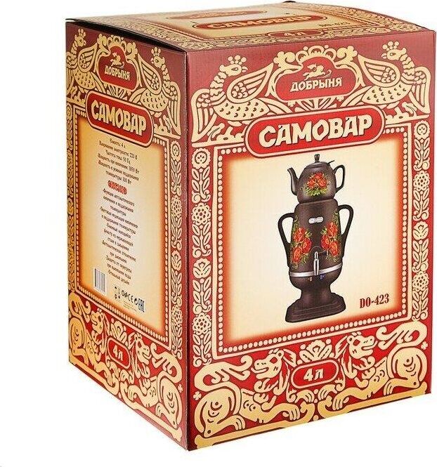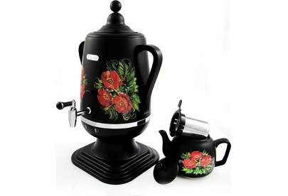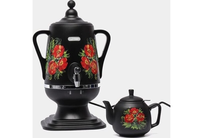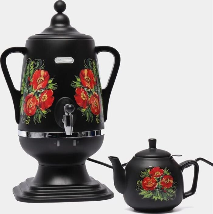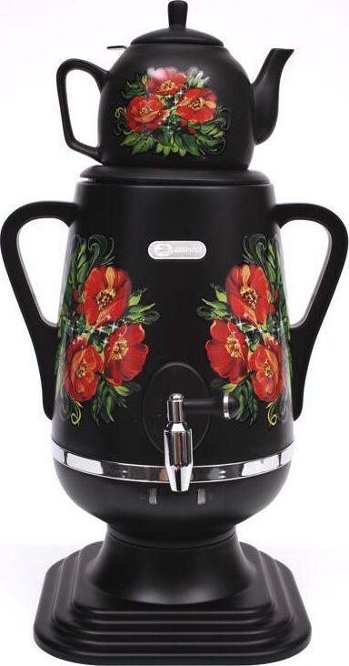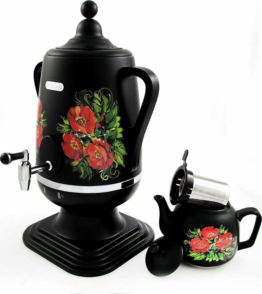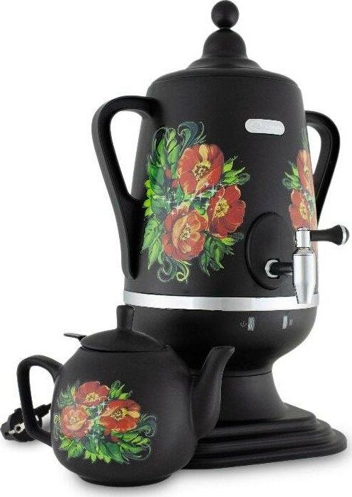 Объём 4 л. Мощность 1850 Вт. материал: термопластик. Керамический заварочный чайник 1 л. со сменным моющимся фильтром из нержавеющей стали в комплекте. Хромированный кран. Функция термопота. Дисковой нагреватель, световая индикация работы, автоматическое отключение, защита от перегрева при выкипании воды.