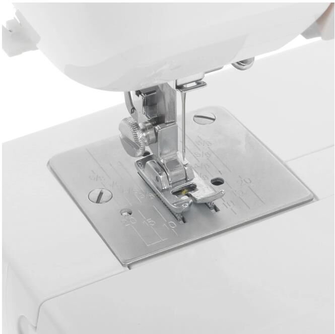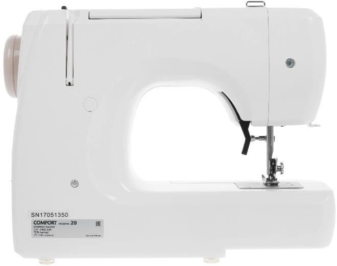Тип: электромеханическая Тип челнока: вертикальный Выполнение петли: полуавтомат Количество швейных операций: 11 Рукавная платформа Максимальная ширина стежка: 5 мм Максимальная длина стежка: 4 мм Кнопка реверса Регулировка скорости шитья: плавная Отсек для аксессуаров Вес: 5,9 кг