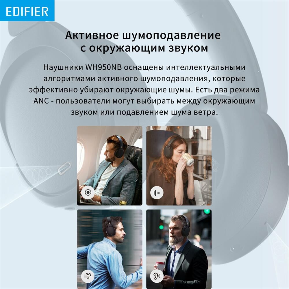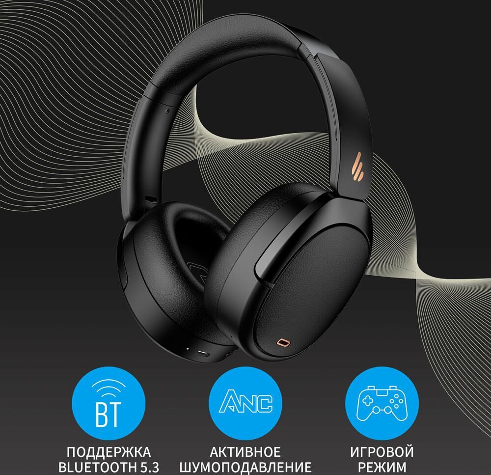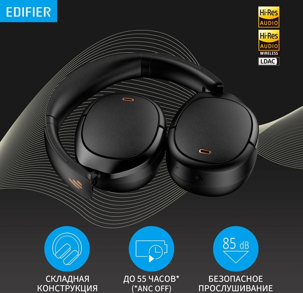 EDIFIER Наушники WH950NB, Bluetooth, мониторные, черный