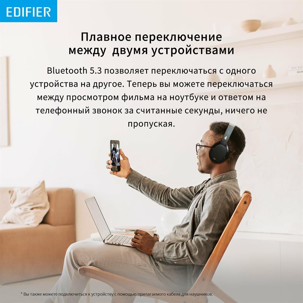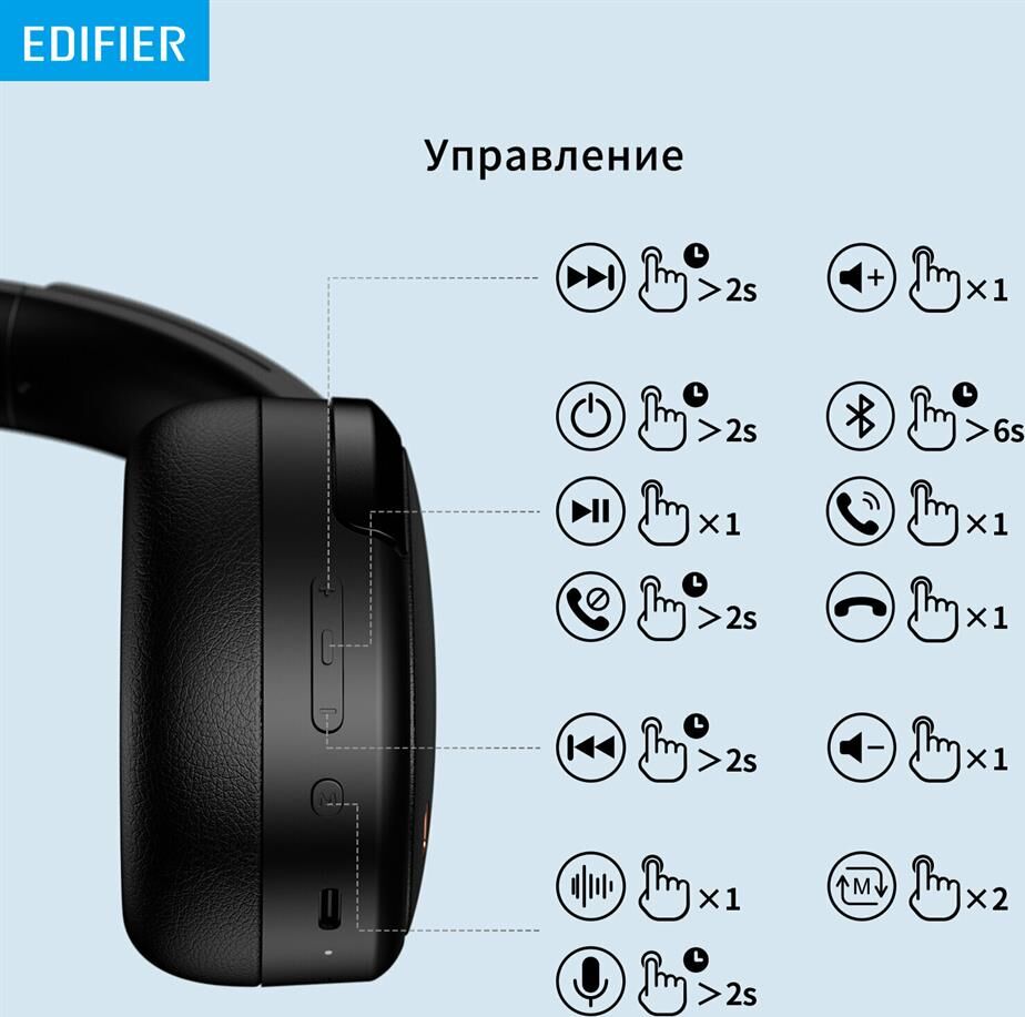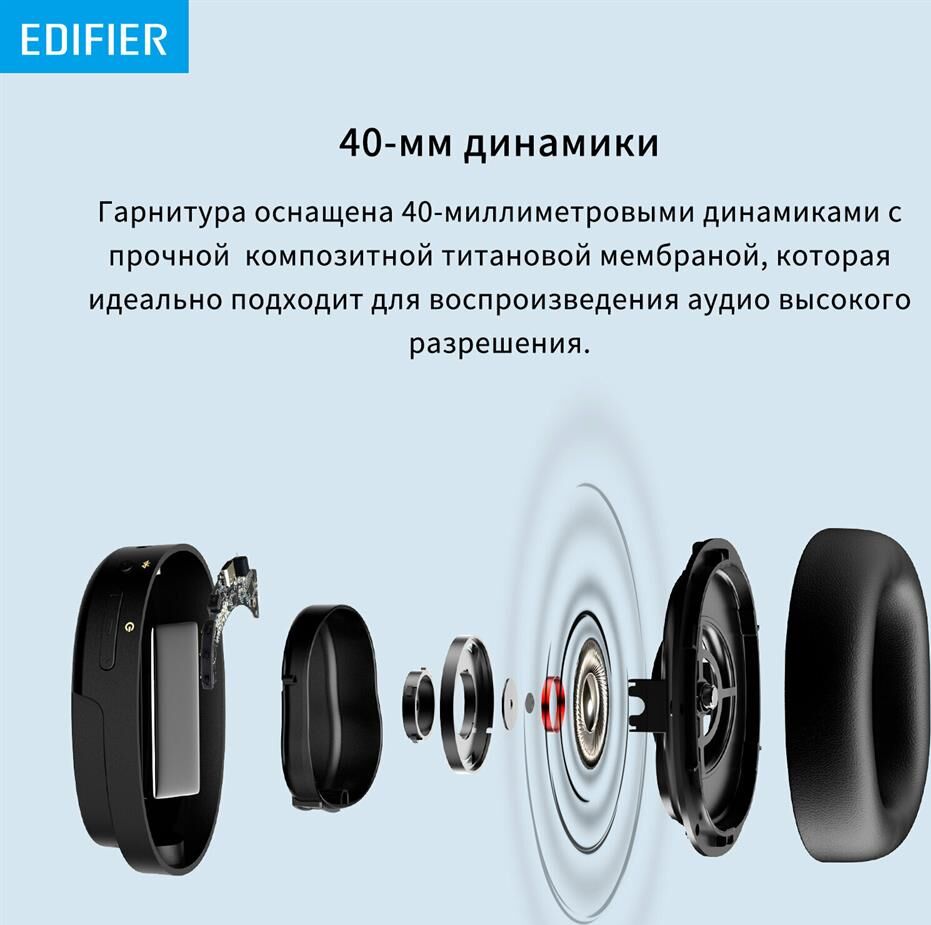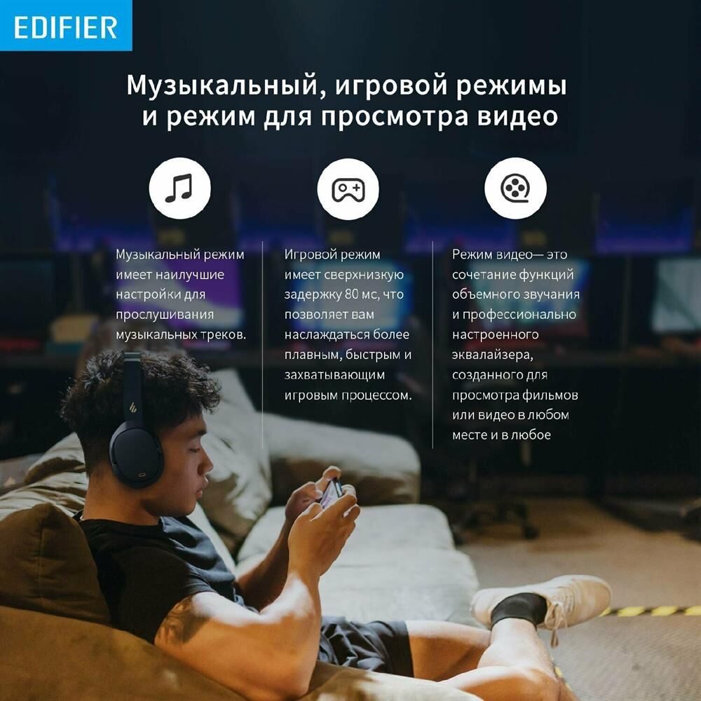 EDIFIER Наушники WH950NB, Bluetooth, мониторные, черный
