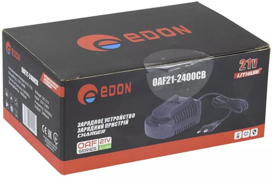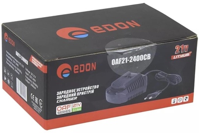 Зарядное устройство Edon OAF21-2400CB для универсальных аккумуляторов инструмента серии OAF. Рекомендовано для зарядки аккумуляторов серии OAF21 большой емкости: 3,0 и 4,0 Ач. Габаритный размер: 15,5x10x6,5 см. ; Вес брутто: 0,3 кг. (Вес с упаковкой).