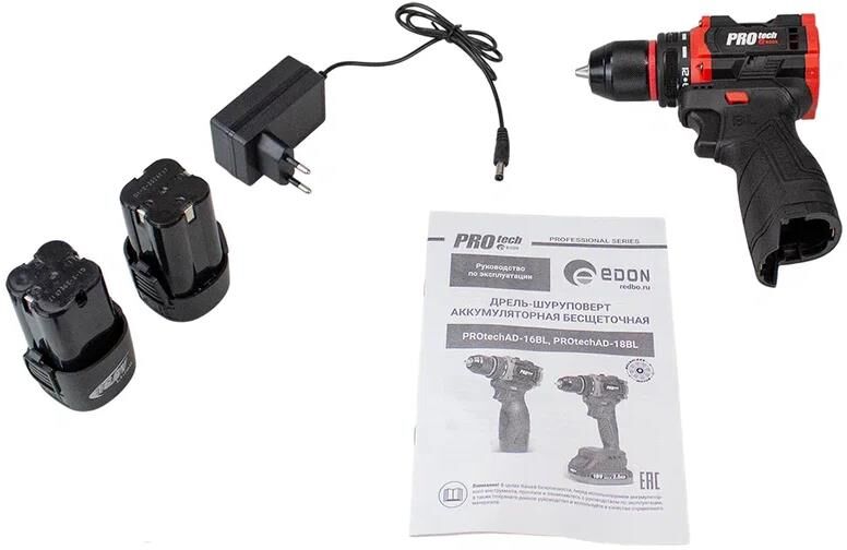 Edon PROtech AD-16BL Акк. Дрель (шуруповерт) бесщеточная (16В., 30Н.м.)