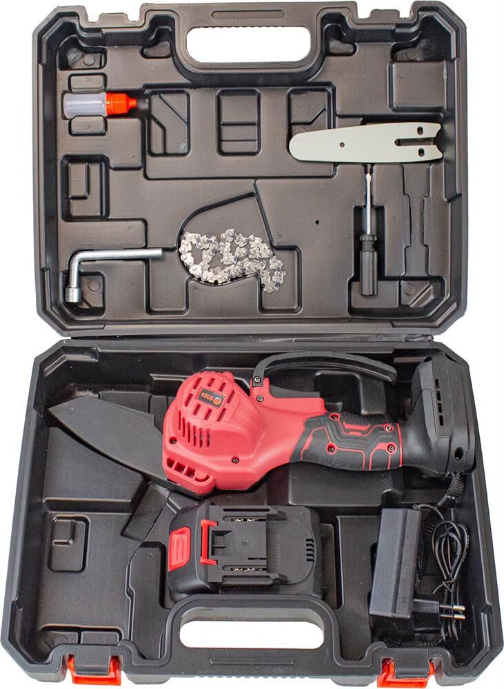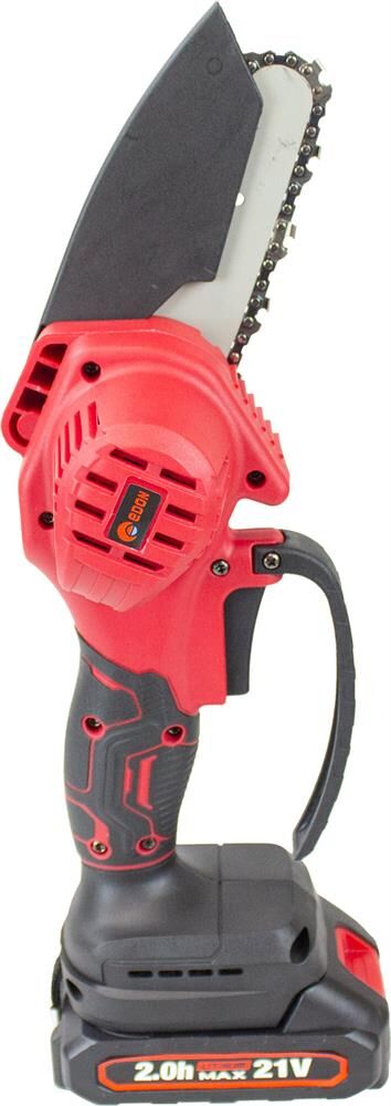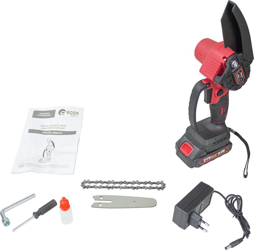 Мини-цепная пила аккумуляторная Edon UNS-21A – аккумуляторный инструмент, предназначенный для распила дерева, фанеры и ДСП. Пила предназначена для работы в условиях умеренного климата при температуре от -10 до +40 ?С и относительной влажности воздуха не более 80%. Пила рассчитана на повторно-кратковременный режим работы с периодом времени: работа/перерыв – 15 мин./5 мин. напряжение - 21 В.; скорость хода цепи – 6 м/сек.; тип аккумулятора – литий-ионный (Li-Ion); ёмкость аккумулятора – 2 А/ч.; размер пильной шины – 10.16/4 см/дюйм.