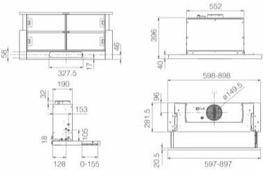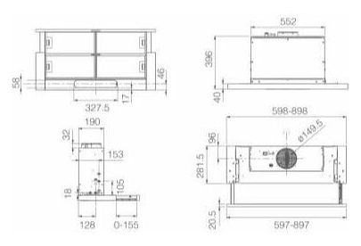 Режимы работы: отвод/циркуляция. Регулировка уровня мощности: есть. Управление: кнопочное. Количество двигателей: одномоторная. Количество регулировок мощности: 3. Диаметр штуцера для отвода воздуха: 150 мм. Максимальная производительность: 1200. Уровень шума: 43. Встроенная подсветка: есть. Тип подсветки: светодиодное. Тип фильтра: алюминиевый жироулавливающий. Мощность подключения: 206. Индикатор загрязнения фильтра: есть. Антивозвратный клапан: есть. Интенсивный режим: есть. Таймер: есть. Вес (нетто): 10.9. Угольный фильтр: отсутствует. Размеры: 59.7x39.6x28.15см. Габариты упаковки (ед) ДхШхВ: 0.68x0.39x0.51. Вес упаковки (ед): 12.5. Гарантия: 12 мес.. Мощность подсветки: 2 х 3 Вт. Размеры секции для встраивания (ШхВхГ): 55.2 х 28.15 мм. Цвет: серебристый. Управление: кнопочное; регулировок мощности 3. Режимы работы: отвод/циркуляция. Уровень шума: 43 дБ. Количество двигателей: одномоторная. Производительность: максимальная производительность 1200 м3/час. Освещение: светодиодное