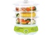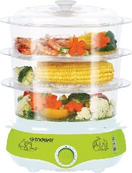 Мощность (Вт): 1000 Номинальное напряжение (В): 220 В, 50 Гц Объем (л): 11 Материал корпуса: Высококачественный жаропрочный BIO-пластик Габаритные размеры: 33*23.5*42 Цвет: белый/салатовый Особенности и дополнительные функции: Индикатор питания Механический таймер до 60 минут Двойная защита от перегрева Мульти-функциональный прибор: приготовление пищи, размораживание, дезинфекция посуды Прозрачные лотки - удобно следить за готовностью блюда Чашу и другие пластиковые части допускается мыть в посудомоечной машине Комплект поставки: Корпус пароварки Чаши - 3 шт. Прозрачные лотки - 3 шт. Руководство по эксплуатации Гарантийный талон