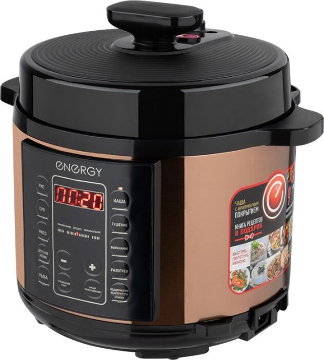 Объем 5 л Чаша с антипригарным покрытием Отложенный старт Поддержание температуры Автоматическое отключение системы при перегреве LED дисплей 9 программ приготовления Рис Суп Мясо Детское меню Рыба Каша Тушение Выпекание Разогрев Мощность 1000 Вт В комплекте: мерный стаканчик, ложка, книга рецептов