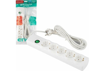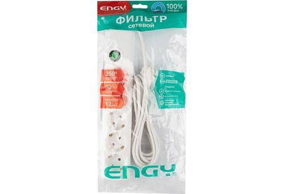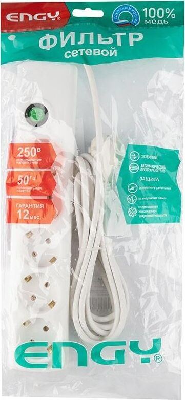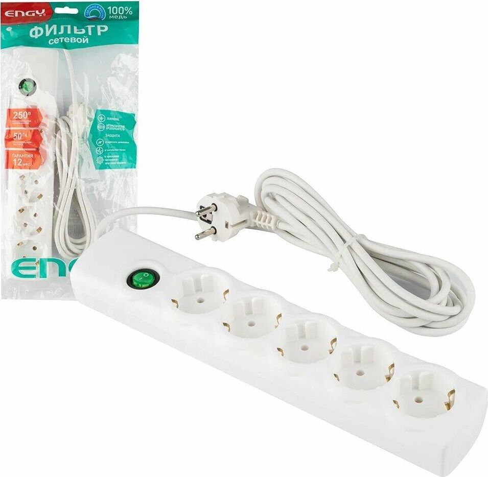 ENGY Сетевой фильтр ENGY "Сеть-2" 3м/5 роз. (ПВС 3*0,75) белый 186758