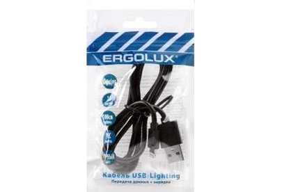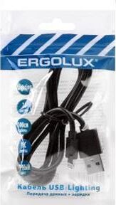 ERGOLUX (15092) ELX-CDC03P-C02 ПРОМО (Кабель USB-Lightning, 2А, 1м, Черный, Зарядка+Передача данных,