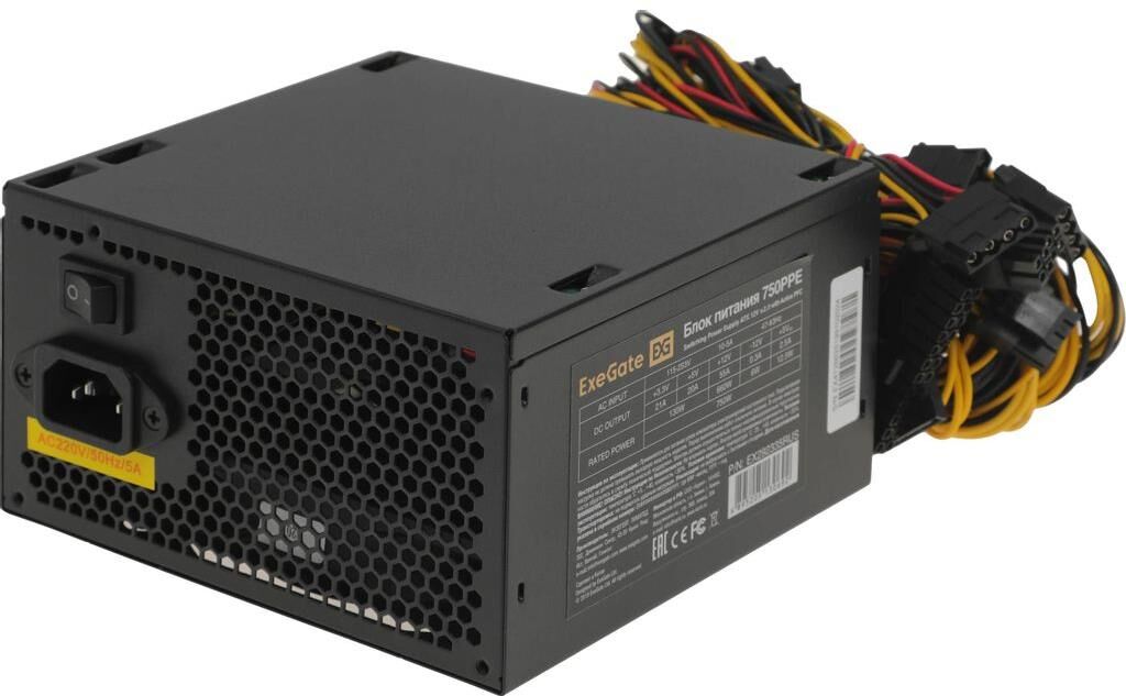 EXEGATE Блок питания ATX 750W 750PPE 80+ (20+4pin) APFC 120mm fan 6xSATA