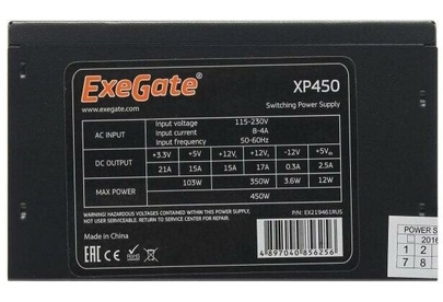 Exegate EX219461RUS-PC Блок питания 450W ExeGate XP450 (ATX, PC, 12cm fan, 24pin, 4pin, PCIe, 3xSATA