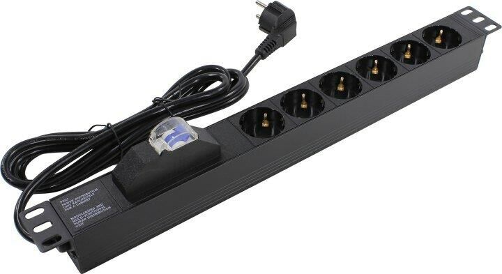 Высота: 1U Установка в стойку 19": Да Номинальное напряжение, В: 230±10% Входная частота, Гц: 50/60 Максимальный ток нагрузки, А: 16 Выходные розетки: Schuko Количество выходных розеток: 6 Входной разъем питания: Евровилка с заземлением; Cоединение с корпусом неразъемное Параметры кабеля питания: Сечение проводов: 3 х 1,5 мм2 Длина кабеля, м: 2,5 Автомат защиты: да Материал корпуса: Алюминий Цвет: Черный Вес , кг: 0,96 Соответствие стандартам: VDE, EAC