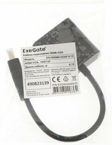 Кабель-переходник ExeGate EX-HDMIM-VGAF-0.15, HDMI-VGA, 0.15 м, черный -Вес: 35 г. -Фасовка: 1 шт -Тип индивидуальной упаковки: Пакет -Длина упаковки: 12 -Высота упаковки: 1.5 -Ширина упаковки: 9 -Объем упаковки: 0.162 -Объем продукта: 0.18 -Объем бокса: 1.8 -Материал: Металл, пластик -Гарантийный срок, мес: 12 -Температурное ограничение: Нет -Разъёмы: HDMI/VGA