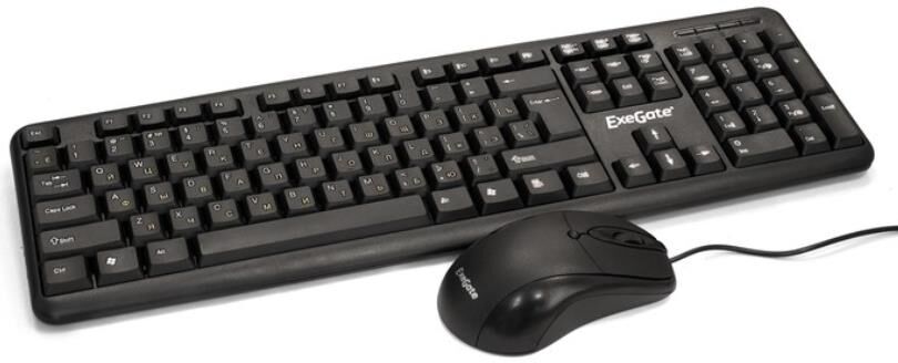 Комплект ExeGate EX287139RUS Professional Standard Combo MK120-OEM (клавиатура влагозащищенная 104кл. + мышь оптическая 1000dpi, 3 кнопки и колесо прокрутки; USB, длина кабелей 1.3м, черный, ОЕМ)