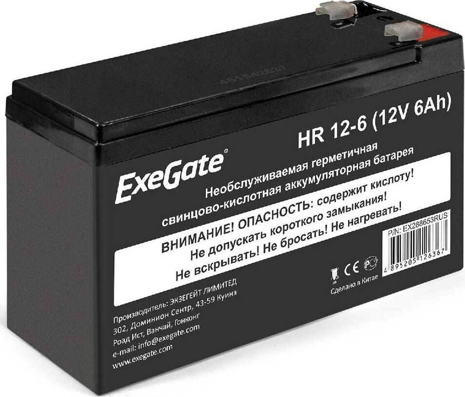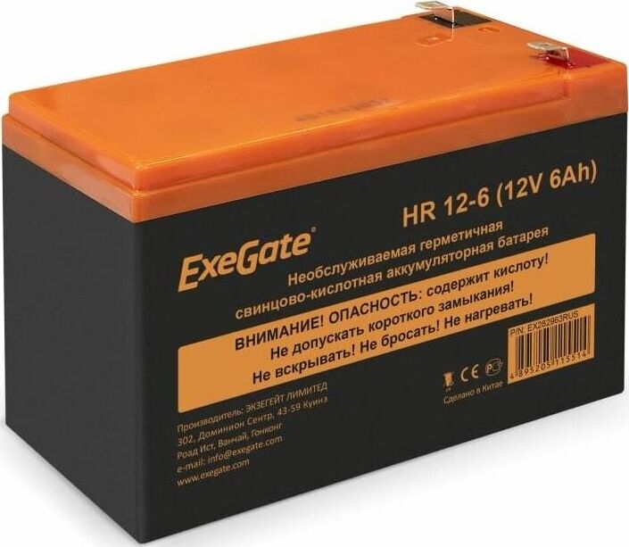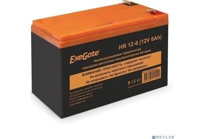 Свинцово-кислотные необслуживаемые аккумуляторы ExeGate серии HR изготовлены по технологии AGM. Обладают низким внутренним сопротивлением и саморазрядом. Оптимизированы для работы в режимах постоянного подзаряда или разряд-заряд. Превосходные разрядные характеристики на коротких временах разряда. Особенности: Корпус аккумулятора выполнен из пластика ABS UL94-HB, не поддерживающего горение. Полностью герметичная конструкция, исключающая утечку электролита.