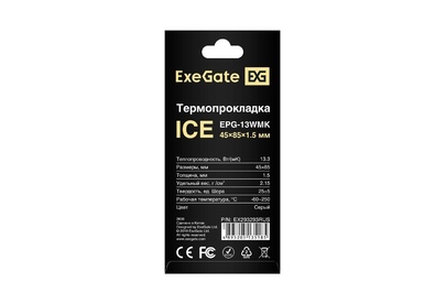 [Термопаста] Exegate EX293293RUS Термопрокладка ExeGate Ice EPG-13WMK (45x85x1.5 mm, 13,3 Вт/ (м•К)) Exegate EX293293RUS Термопрокладка ExeGate Ice EPG-13WMK (45x85x1.5 mm, 13,3 Вт/ (м•К)) масса(кг) 0.02 GTD Number 10013160/161222/3613020/2 GTIN 04895205135185 Cтрана-производитель китай Партномер EX293293RUS Вес (грамм) - высота(см) 8 Вязкость - гарантия 6 месяцев длина(см) 17 Дополнительно - Комплект поставки Термопрокладка масса(кг)