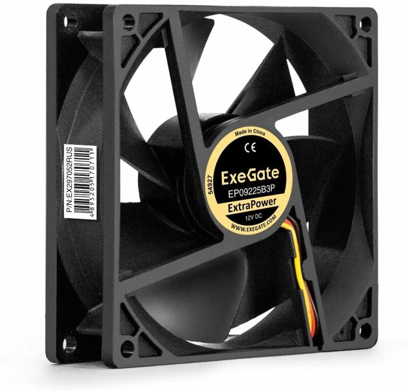 Вентилятор для корпуса ExeGate ExtraPower EP09225B3P черный, 92 мм, 2600 об/мин, 32 дБ, 3 pin