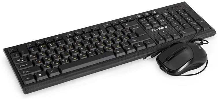 Комплект клавиатура + мышь ExeGate Professional Standard Combo MK170 (клавиатура влагозащищенная 104кл. + мышь оптическая 1200dpi, 3 кнопки и колесо прокрутки, длина кабелей 1,5м; USB, черный, RTL)