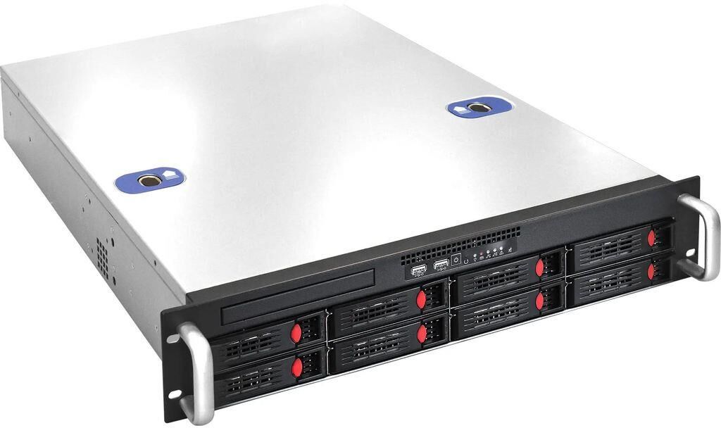 Тип: монтируемый в стойку. Монтаж в стойку: 2U. Форм-фактор материнской платы: ATX. Внешние отсеки 3.5" (горячая замена): 8. Особенности внешних отсеков: Количество внешних отсеков 5,25": 1 под Slim-DVD привод Корзины Hot Swap поддерживают форматы: SAS 6Гбит/с и SATA I/II/III. Внутренние отсеки 3.5": 1. Полноразмерных слотов расширения (FF): 7. Установленные вентиляторы: 3 x 8 см (на перегородке). Дополнительные вентиляторы (приобретаются отдельно): 1 x 8 см (на перегородке). Блок питания: 900 Вт. Тип блока питания: фиксированный. Максимальное количество блоков питания: 1. Особенности блока питания: ExeGate ServerPRO-1U-900ADS. Габариты упаковки (ед) ДхШхВ: 0.711x0.56x0.2. Вес упаковки (ед): 14.3. Гарантия: 24 мес.. Цвет: черный. Размеры: 481 x 89 x 585 мм. Тип: монтируемый в стойку, 2U. Максимальное количество блоков питания: 1. Форм-фактор материнской платы: ATX. Внутренние отсеки: 3.5" х 1. Блок питания: фиксированный, 900 Вт. Внешние отсеки: 3.5" (горячая замена) х 8