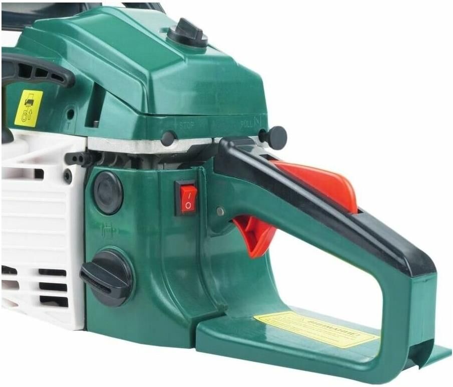 Потребляемая мощность (Вт) 2000. Число оборотов (об/мин) 3000. Длина шины (см) 45 см/18". Тип двигателя Двухтактный. Объем двигателя (см3) 45. Объем топливного бака (л) 0.55. Объем масляного бака (л) 0.26. Шаг цепи 0.325. Кол-во звеньев цепи 72. Легкий старт Да. Увеличенный ресурс работы стартера Да. Легкий доступ к фильтру Да. Металлические кулачки Да. Хромированный цилиндр Да. Комплектация Цепь Да. Набор ключей Да. Чехол Да. Шина Да.