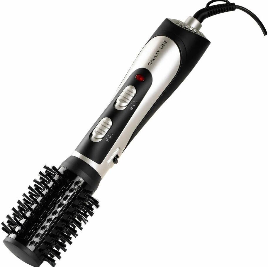Фен-расческа Galaxy Line GL 4411, черный с серебристым, 1200 Вт, 2 скорости потока воздуха, 3 температурных режима, шнур, вращающийся на 360° с подвесной петлей, 3 насадки в комплекте