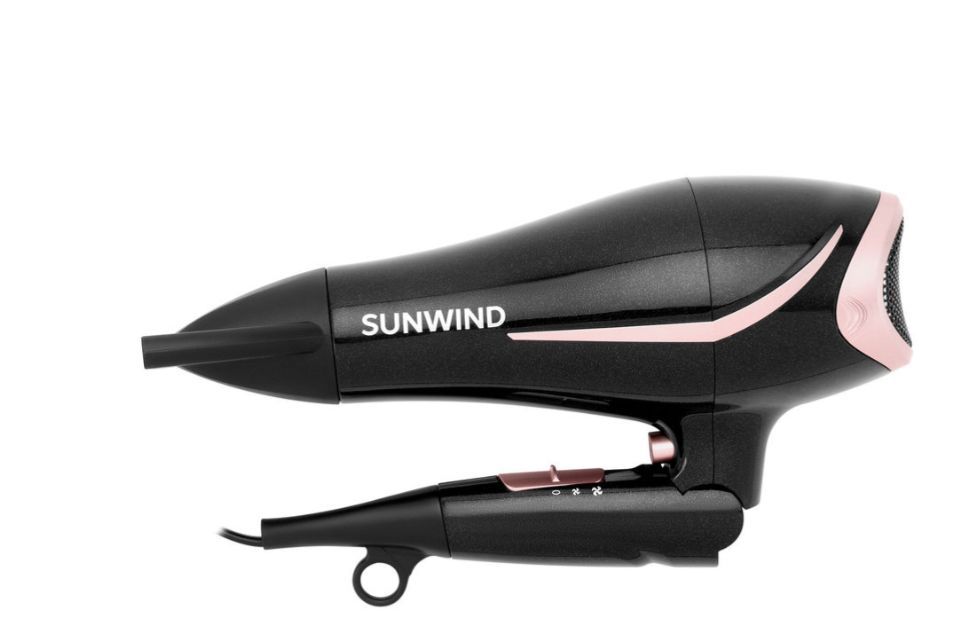 Фен SUNWIND SUHD 550, 2200Вт, черный и розовое золото Волосы быстро высушиваются, укладываются за счет мощности, равной 2200 Ватт. Отдельные пряди удобнее распределять узкой насадкой-концентратором. Предусмотрено два режима функционирования. Возможна подача холодных воздушных потоков для местного охлаждения сформированной прически. Безопасности эксплуатации способствует съемная защитная решетка с турмалиновым покрытием. Такой элемент позволяет ионизировать воздух, нивелировать вредные для волос факторы. Пользоваться феном комфортно благодаря его компактности. Перед хранением, транспортировкой модель становится еще меньше в размерах из-за складывающейся рукоятки.