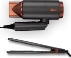 С My glamour set вы можете сушить, выпрямлять или завивать волосы, где бы вы ни находились. В набор входит фен мощностью 2200 Вт. Вы можете выбрать режимы «Эко», «Максимум» и «Холодный обдув», чтобы добиться желаемого результата. Его идеально брать с собой в поездку, так как он складывается и не занимает много места. В комплект также входит насадка-концентратор и съемный фильтр для легкой очистки. Оптимальная температура выпрямителя для волос составляет 200°C. Пластины имеют керамическое покрытие (обеспечивающее равномерный контроль температуры по всей длине волос), являются плавающими и имеют увеличенную длину 110 мм, что делает выпрямление еще проще и быстрее, даже для длинных волос. Он также оснащен выключателем со светодиодным индикатором. В комплект также входит элегантная термостойкая косметичка с двумя отделениями. Этот набор станет идеальным подарком, ведь эти два высококачественных продукта вас приятно удивят. Фен: Мощность: 2200 Вт Количество настроек: 3 (Эко, Макс, Холодный обдув) Складной вариант