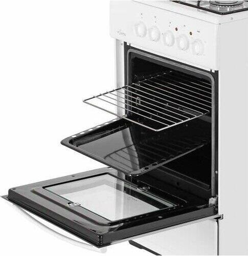 Цвет: белый, Размеры: Ширина: 50 см, Глубина: 60 см, Высота: 85 см, Материал: сталь, 3 газовые горелки+1 электроконфорка, щиток, электрическая духовка, профильная решетка, хоз.отсек, Материал варочной поверхности: эмаль, Материал крышки/щитка6металл, Тип духовки6электрическая, Объем духовки650, вес: 33кг