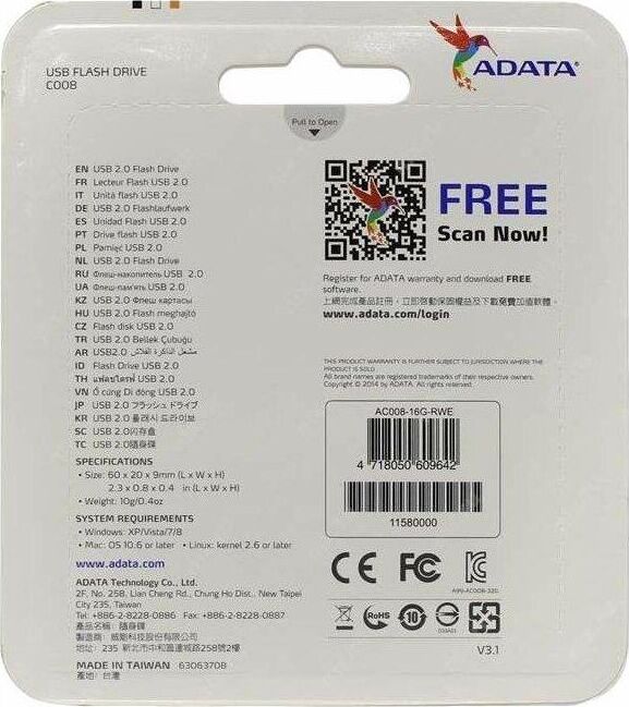 Флешка (USB) A-DATA 16GB C008 бело-синяя