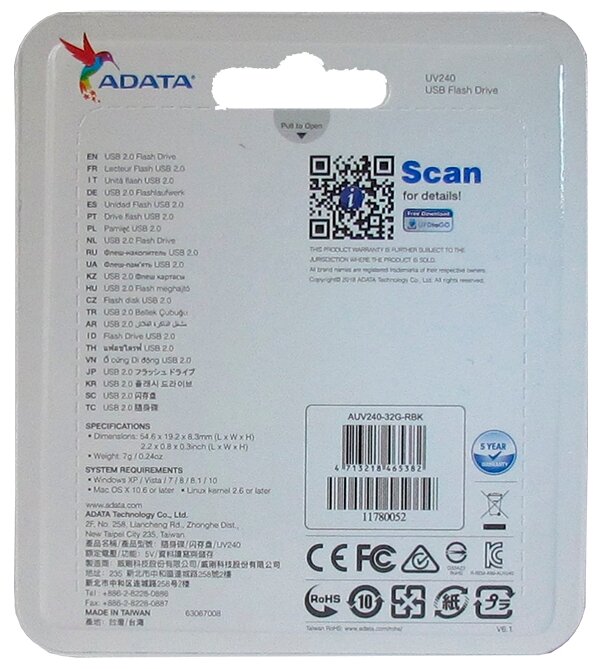 Флешка (USB) A-DATA 32GB UV240 черный (AUV240-32G-RBK)