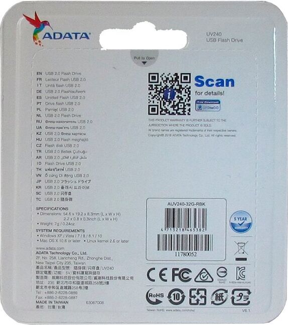 Флешка (USB) A-DATA 32GB UV240 черный (AUV240-32G-RBK)