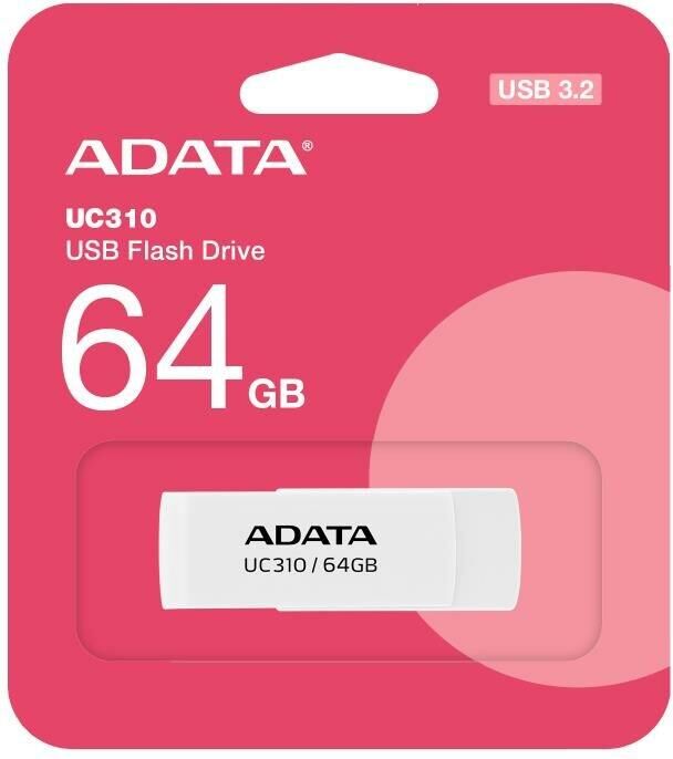 Флешка (USB) A-DATA Флеш Диск 64GB UC310 UC310-64G-RWH USB3.2 белый