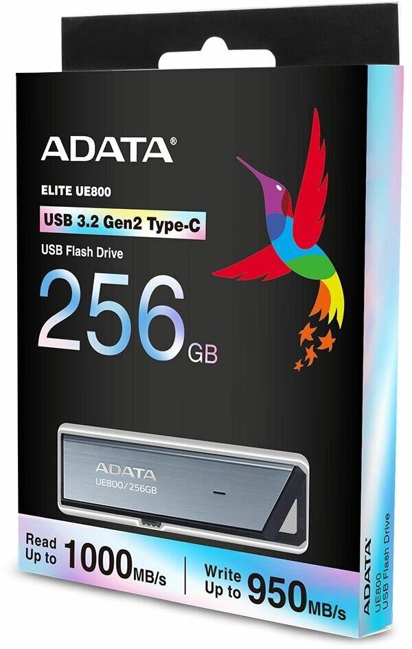 Флешка (USB) ADATA USB накопитель Elite UE800 AELI-UE800-256G-CSG USB 3.2 256GB Gen2, USB Type-C, Black, Retail