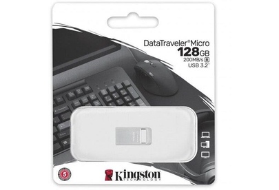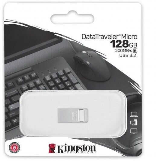 Флешка (USB) KINGSTON Флеш Диск 128GB DataTraveler Micro DTMC3G2/128GB USB3.2 серебристый