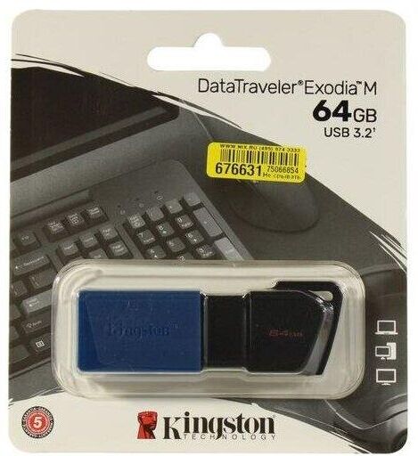 Основные характеристики Бренд KINGSTON Модель Exodia M Объем 64 ГБ Интерфейс USB3.0 Разъем USB А, выдвижной Комплектация Кол-во шт. в упаковке 1 шт Материалы Материал корпуса пластик Цвет, размеры, вес Цвет черный и синий Размеры 67.4 x 21.8 x 11.6 мм Вес товара 10 грамм
