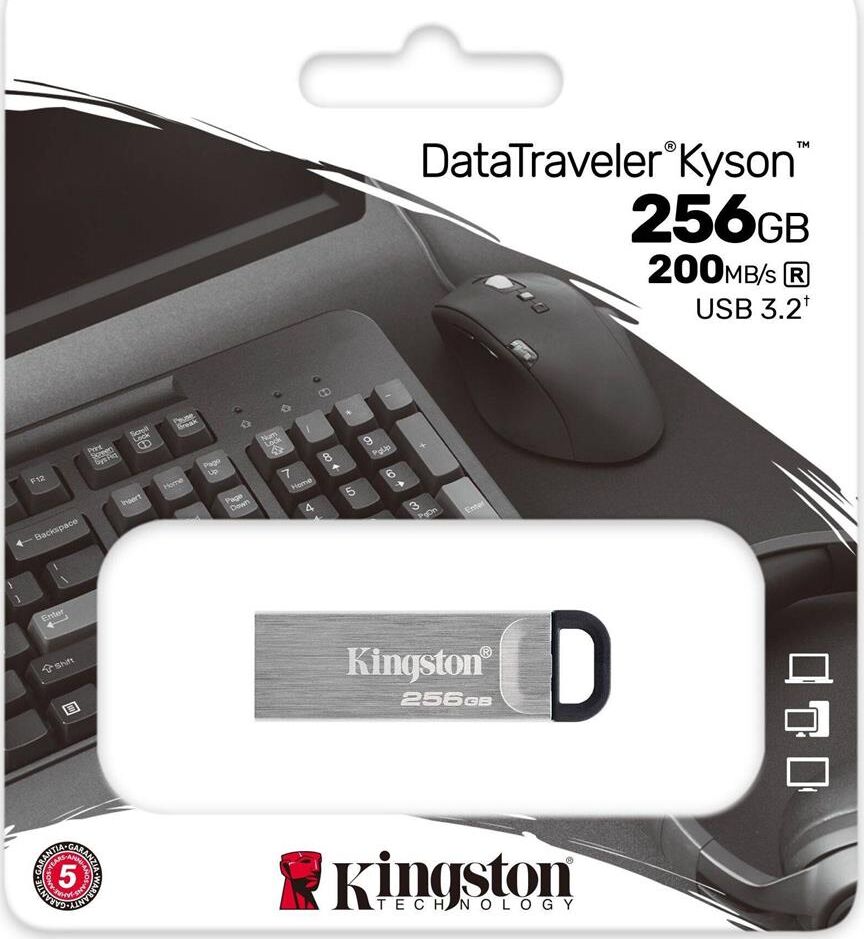 Флешка (USB) KINGSTON Флешка USB DataTraveler Kyson 256ГБ, USB3.2, серебристый и черный [dtkn/256gb]