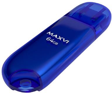 Флешка (USB) MAXVI USB флеш-накопитель P1 64GB blue, монолит с колпачком, ABS пластик, USB 2.0