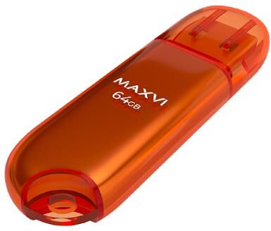 Флешка (USB) MAXVI USB флеш-накопитель P1 64GB orange, монолит с колпачком, ABS пластик, USB 2.0