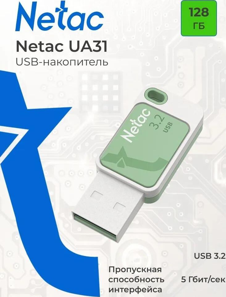 Флешка (USB) NETAC Флеш Диск 128GB UA31 NT03UA31N-128G-32GN USB3.2 зеленый