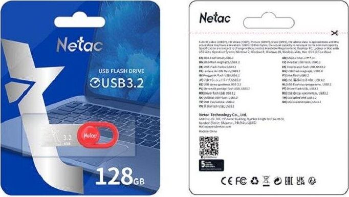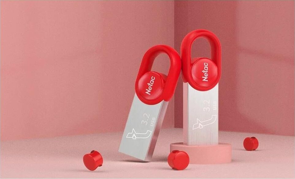 Флешка (USB) NETAC Флешка USB UM2 128ГБ, USB3.2, серебристый и красный [nt03um2n-128g-32re]