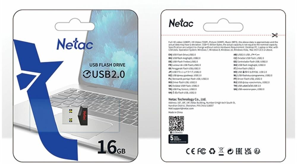 Бренд NETAC Модель UM81 Объем 16 ГБ Интерфейс USB2.0 Разъем USB А, открытый Комплектация Кол-во шт. в упаковке 1 шт Материалы Материал корпуса пластик Цвет, размеры, вес Цвет черный Размеры 18.3 x 13.85 x 7.65 мм
