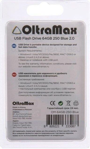 Флешка (USB) OLTRAMAX OM-64GB-250-синий