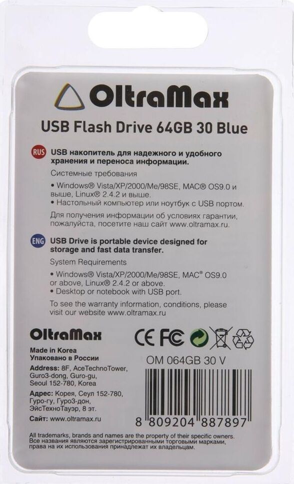 Флешка (USB) OLTRAMAX OM064GB30-Bl синий