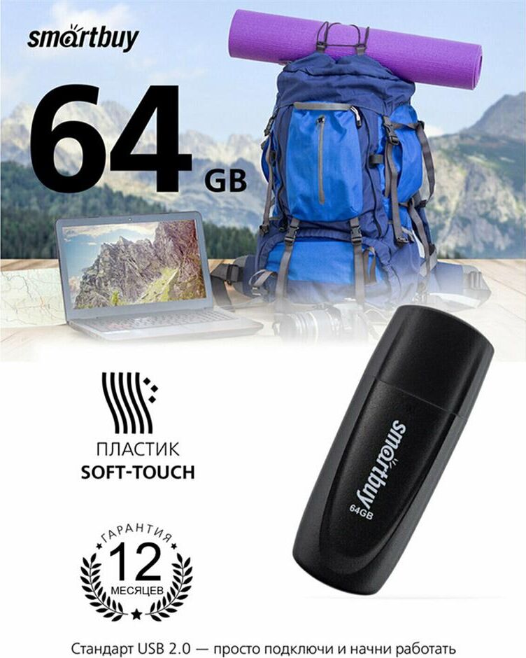 Флешка (USB) SMARTBUY (SB064GB2SCK) UFD 2.0 064GB Scout Black черный
