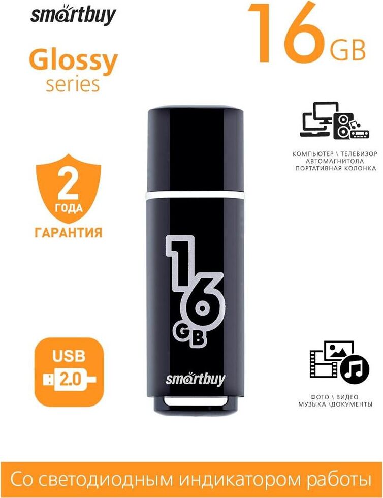 Флешка (USB) SMARTBUY 16GB GLOSSY SERIES BLACK