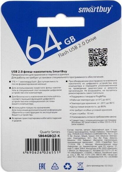 Флешка (USB) SMARTBUY 64GB QUARTZ SERIES BLACK