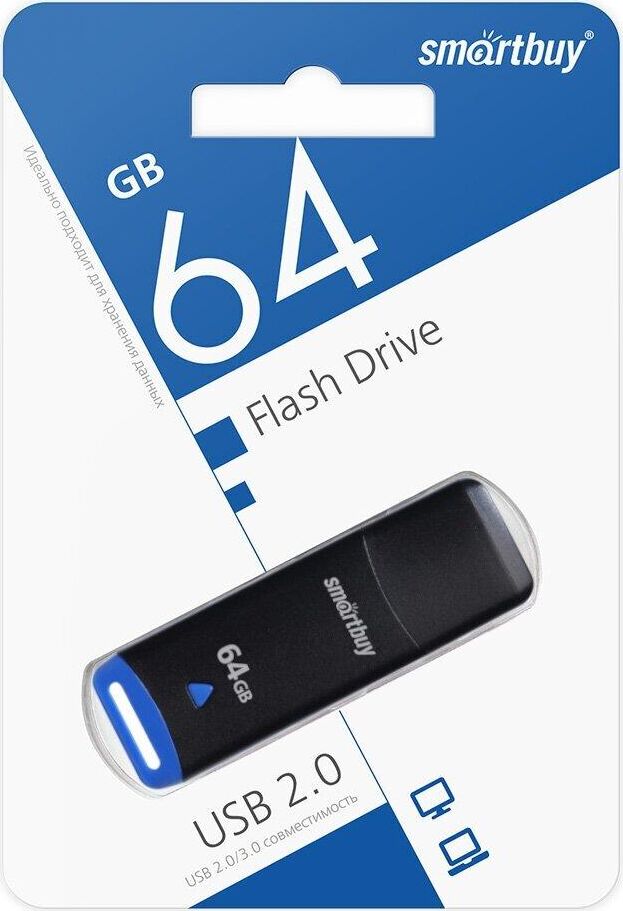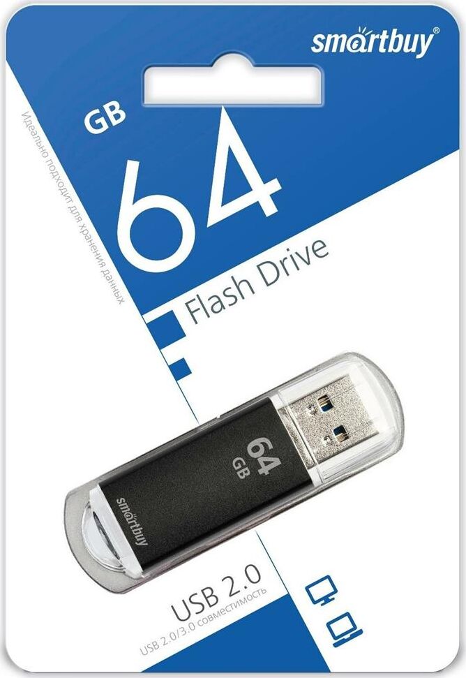Флешка (USB) SMARTBUY 64GB V-CUT BLACK