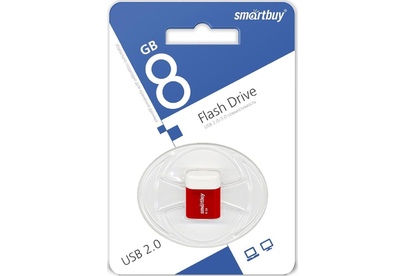 Флэш-накопитель, объем памяти 8 ГБ, интерфейс USB 2.0, скорость записи данных 5 МБ/с, скорость чтения данных 15 МБ, материал корпуса - пластик, цвет - красный.