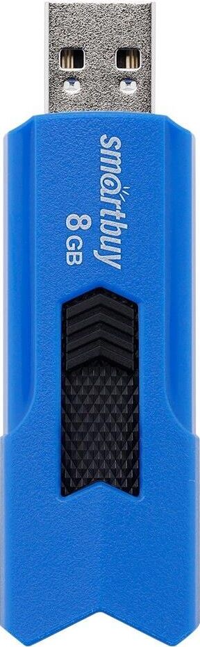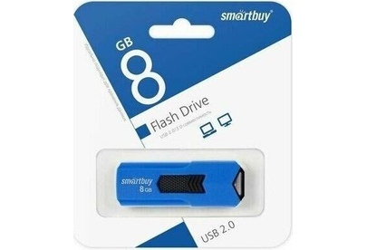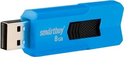 USB Флеш-накопитель SmartBuy 8ГБ, раздвижной, имеет отверстие для шнурка, которое позволяет прикрепить накопитель к Вашему телефону или связке ключей, корпус защищает разъем USB от повреждений, цвет - синий.