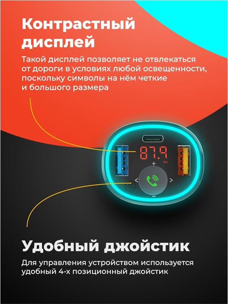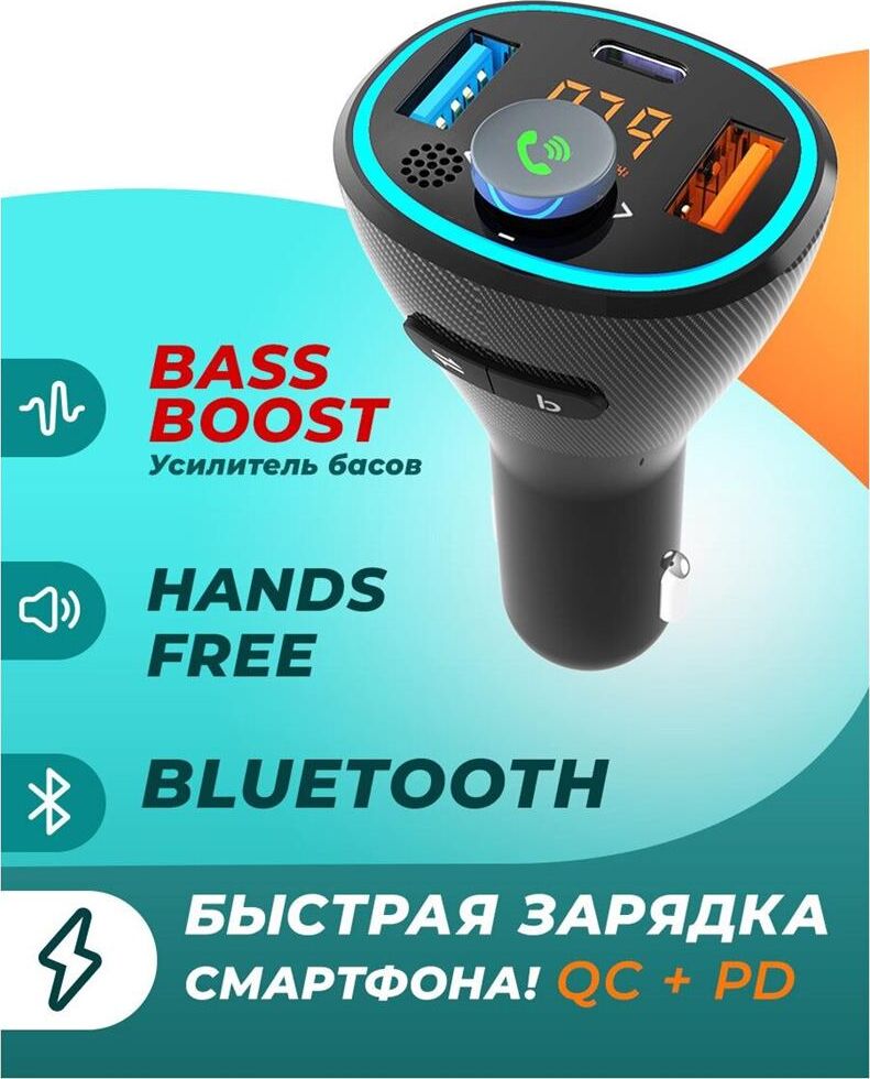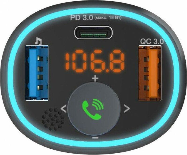 варианты внешнего видачёрный тип дисплеясегментный жидкокристаллический подключение дополнительной памятидо 32 ГБ конструкция микрофонавстроенный поддержка Bluetooth версия Bluetooth5.0 примерный радиус действия Bluetooth*до 10 м поддерживаемые профили BluetoothA2DP, AVRCP, HFP роли в Bluetooth-соединенииhandsfree, приёмник аудио диапазоны радиосигналаУКВ / FM 87,5–108 МГц, частотная модуляция (FM) роли в обмене радиосигналомисточник аудио функция BASS BOOST количество кнопок3 конструкция разъёмаштекер разъём прикуривателя питаниепостоянный ток напряжение питания12...24 В конструкция разъёмагнездо USB тип A максимальный объём подключаемого носителя памяти32 ГБ выдаваемое питаниепостоянный ток выдаваемое напряжение питания5 В выдаваемый ток питания1 А конструкция разъёмагнездо USB тип A выдаваемое питаниепостоянный ток номинальная выдаваемая мощность18 Вт